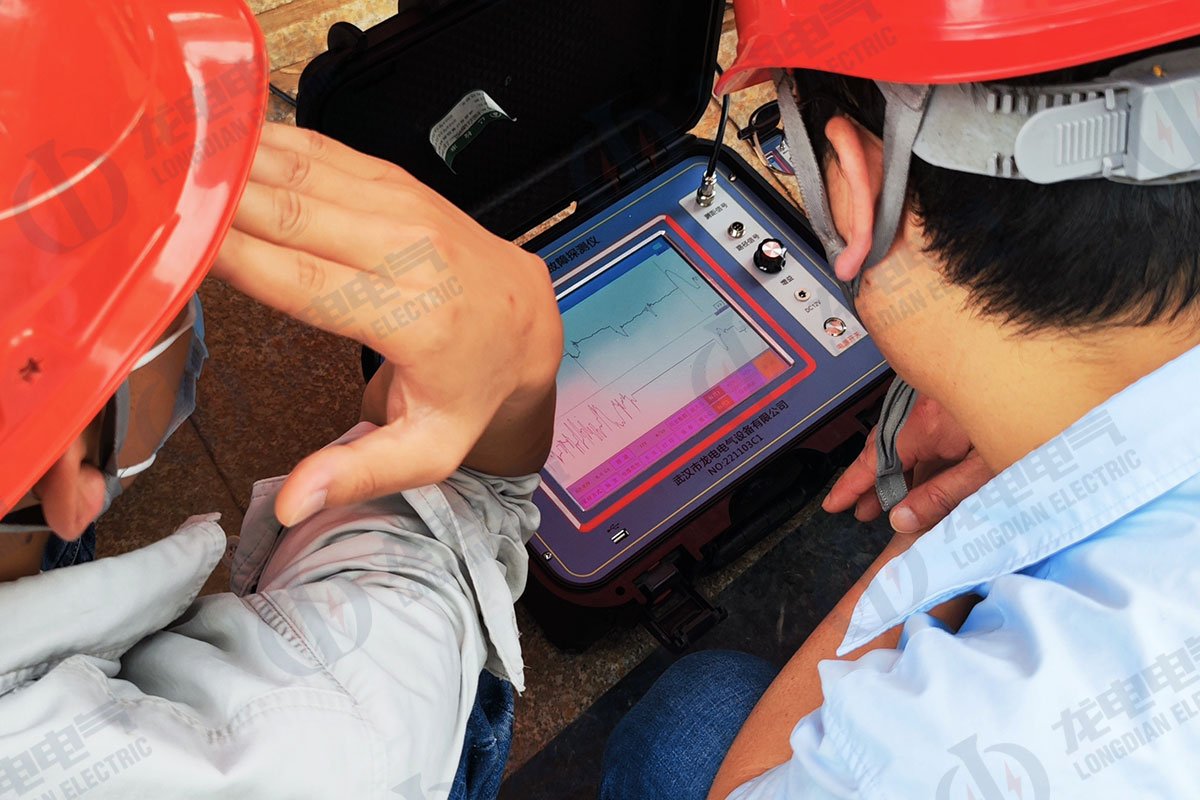 武漢龍電電氣技術團隊成功為湖北重工客戶定位了地埋10K電纜的故障點,該故障點位于水泥鋪設的管道內(nèi)。在高壓閃絡時,近10米范圍內(nèi)全是啪啪啪的響聲。技術團隊通過聲磁同步加震動分析定位,將故障點精確定在30厘米范圍內(nèi),大大減少了開挖工程量和費用,贏得了客戶的高度贊揚。